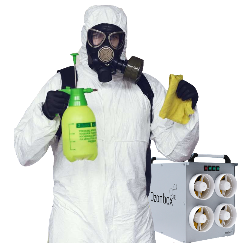 После демонтажа всех необходимых предметов и уборки квартиры применяется дезинфекция профессиональными озонаторами в течении 24-72 часов в зависимости от ситуации согласно регламенту.